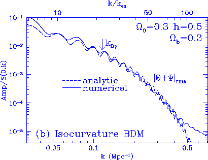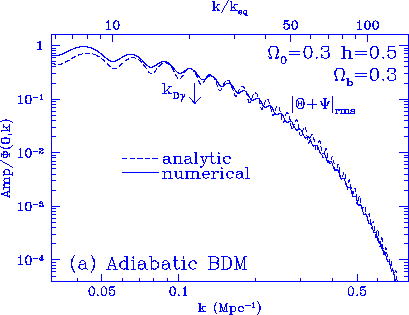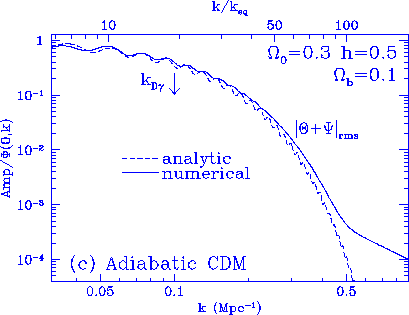 The model here is adiabatic CDM, $\Omega_0=1$, $h=0.5$, $\Omega_b=0.05$.